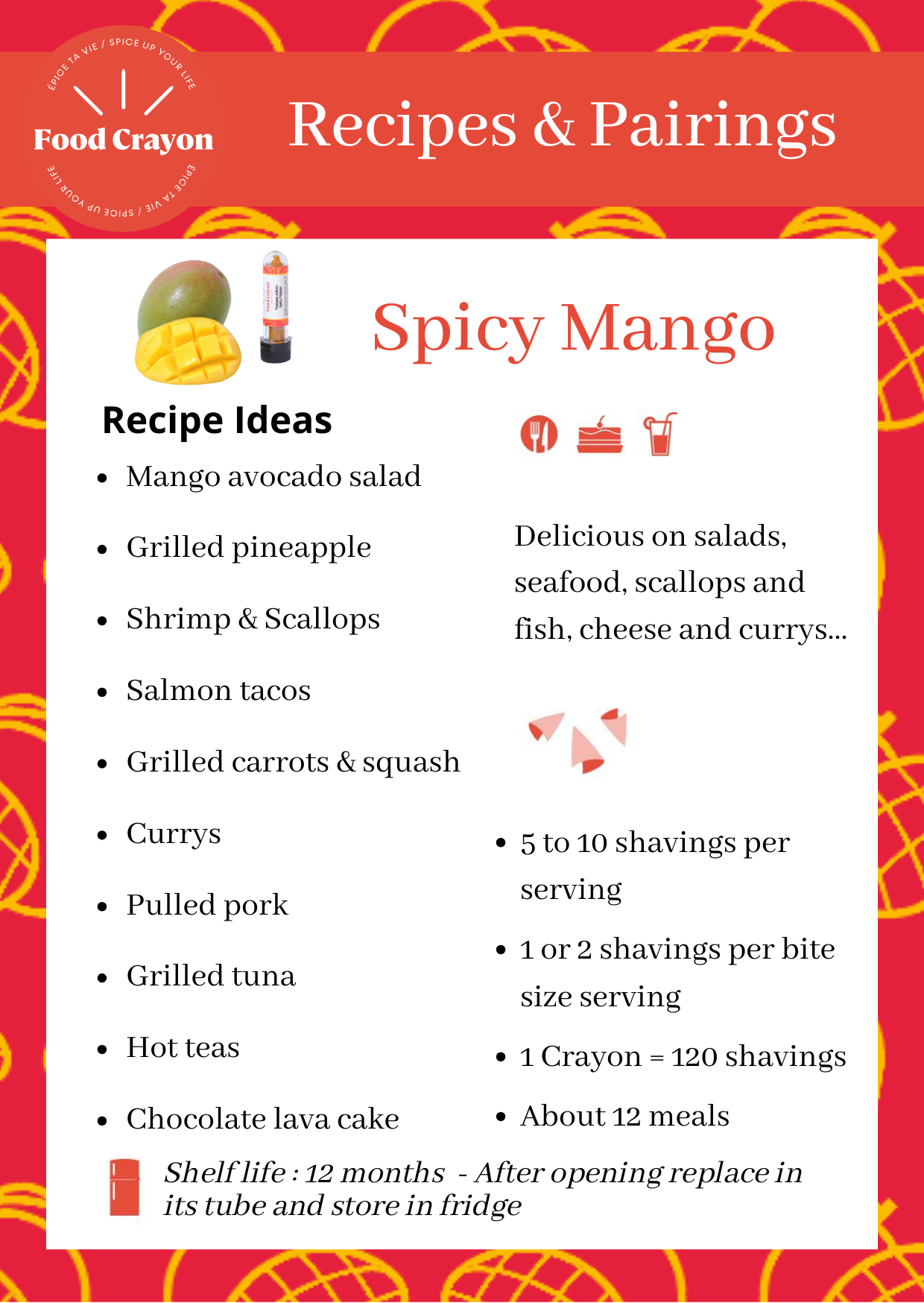 The Spicy Mango Crayon resembles mango chutney, boasting an alluring blend of sweet and salty flavors that harmoniously enhance a variety of dishes, including meals, salads, and desserts – reminiscent of a zesty fruit preserve.